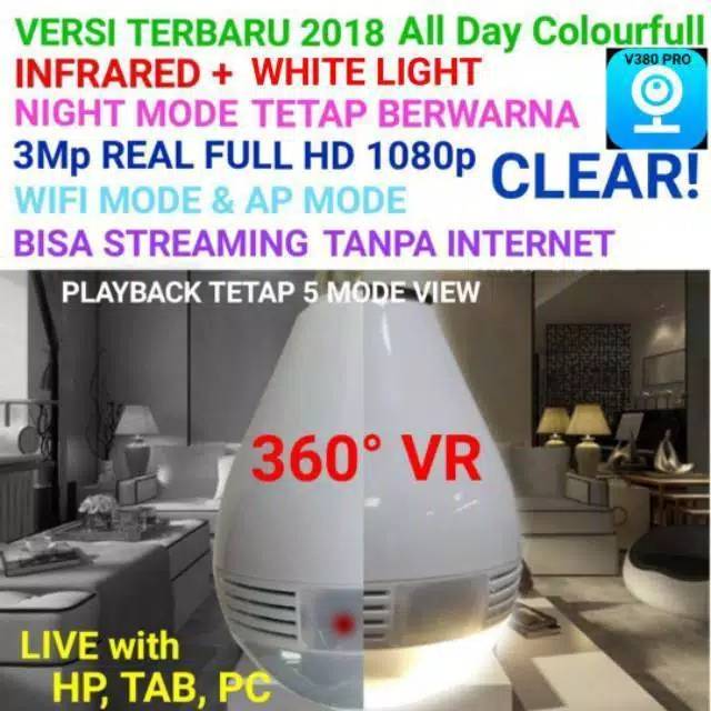 V380 Pro Ip Camera Bohlam 3mp Full Hd 1080p Infrared White Light Bohlam Cctv 360 Panoramic Shopee Indonesia